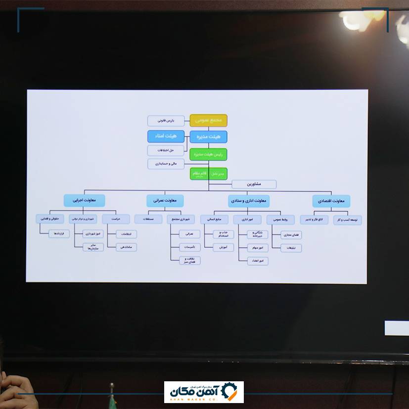 آقای عالیپور مشاور شرکت آهنمکان به تشریح چارت سازمانی و بررسی لایههای میانی و عملیاتی آن پرداخت و افزود: در ساختار سازمانی، نقشها، موقعیتها و وظایف سازمانی شرکت مشخص میشود.